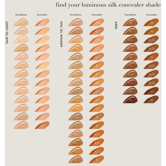 Formula ultra-ușoară a corectorului Luminous Silk conține un număr mare de pigmenți, datorită cărora formează o acoperire uniformă și densă, cu efect de iluminare, care nu se simte deloc pe față. Produsul conține glicerină și vitamina E, astfel încât nu usucă pielea, ci, dimpotrivă, o hidratează timp de 24 de ore.