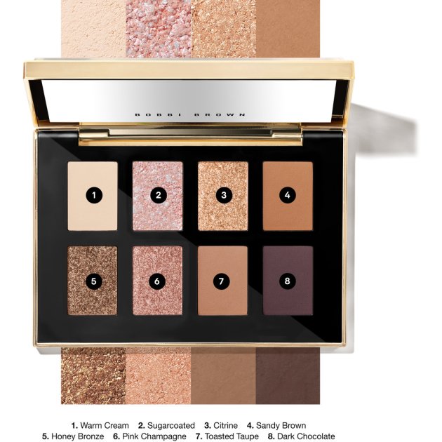 O paletă de farduri de pleoape cu opt nuanțe, cu nuanțe mate și strălucitoare, extrem de pigmentate, care facilitează crearea machiajului ochilor de sărbători. Paleta oferă o nouă perspectivă asupra nuanțelor neutre, permițându-vă să utilizați nuanțele preferate în și mai multe combinații. • 8 farduri de pleoape în ediție limitată • Farduri de pleoape mate și strălucitoare • Nuanțe ușor de aplicat • Paletă inspirată de sărbători • Fardurile de pleoape neutre, strălucitoarele în tonuri de roz și fardurile versatile de negru delicat facilitează crearea machiajului ochilor de sărbători. • Designul unic, în ediție limitată, este perfect pentru seturi cadou. Nuanțe: Crem cald: Alb natural, delicat Sugarcoated: Rece, roz Citrin: Auriu-gălbui Sandy Brown: Maro neutru Honey Bronze: Cald, bronz Pink Champagne: Roz deschis, șampanie Toasted Taupe: Cald, gri-maroniu Dark Chocolate: Neutru, negru delicat Mod de utilizare: Aplicați nuanța mată mai deschisă pe toată pleoapa, apoi estompați nuanța mai închisă în pliu. Adăugați nuanța strălucitoare în colțul interior și în centrul pleoapei. Finalizați cu nuanța mai închisă de-a lungul liniei genelor.