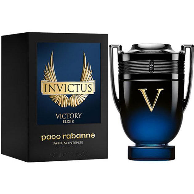 Descopera Invictus Victory Elixir, noua apa de parfum aflata in topul intensitatii Invictus - parfumul iconic al invingatorilor semnat Rabanne. Un elixir puternic creat pentru victoria dincolo de orice limite. Un parfum bogat, puternic ce persista, asemeni unui nectar cu note proaspete lemnoase, pentru eroul invingator. Expresia suprema a victoriei, nu te opri in a o cauta! Quintesenta Invictus Victory. Un elixir pretios, ambrat lemnos cu un impact olfactiv puternic. Formulat cu ingrediente performante si concentrate pentru o intensitate maxima. Un val de prospetime asigurat de lavandinul din Provence cu note de cardamon verde si piper negru. Sticla emblematica Invictus Victory isi concentreaza toata puterea cu un nou trofeu lacuit elegant ce reflecta bogatia intensa a elixirului pe care il detine. Cu ADN-ul invingatorului, V-ul aurit al Victoriei este gravat pe sticla, iesind in evidenta pe fundalul gradat de la negru pana la albastu inchis. Capacul negru lucios incununeaza trofeul. Aceasta sticla este icoana suprema a victoriei.